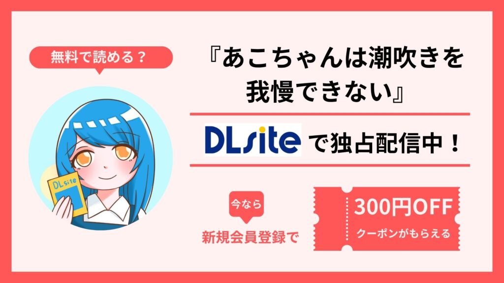 \9/11まで50%OFFセール中/『あこちゃんは潮吹きを我慢できない』をお得に読む>> 漫画『あこちゃんは潮吹きを我慢できない』を無料で読む方法はありません。しかし、「DLsite」を利用することで、格安で読むことができますよ! サービス名 配... -